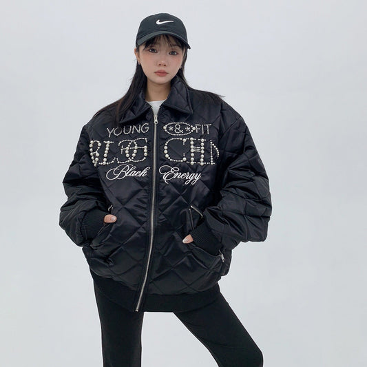 【アウター】春 秋 冬 アメリカンスタイル ゆったり 刺繍 厚手 綿入れコート【FCシリーズ】