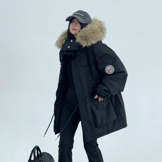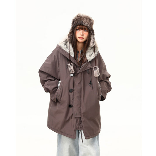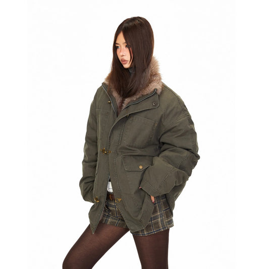 【アウター】💖ユニセックスで着用可!アメリカンヴィンテージ風ワークジャケット ミドル丈 ファー付き 冬新作 綿入れコート【FCシリーズ】