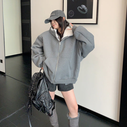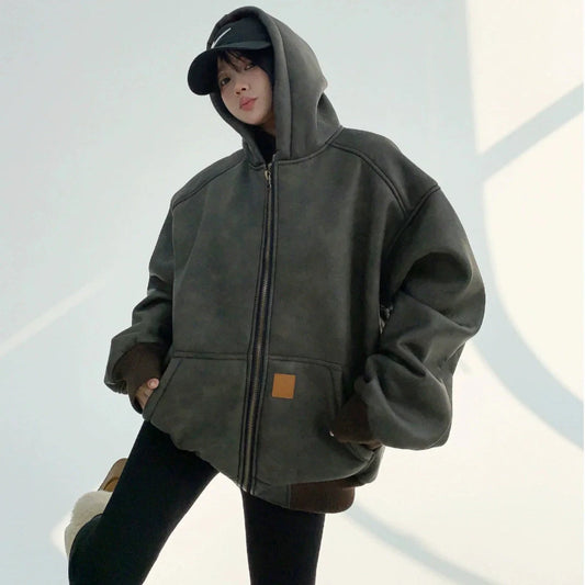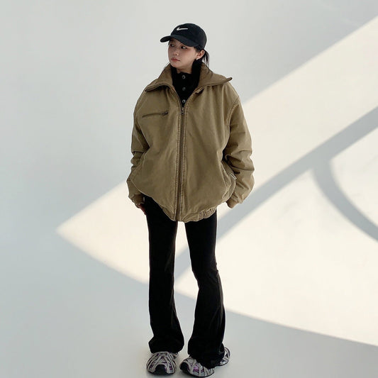 【アウター】 バイカー風レトロ フード付き 🔥 ルーズ中綿ジャケット 厚手 綿入れコート【FCシリーズ】【15~20日発送】