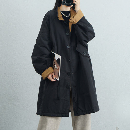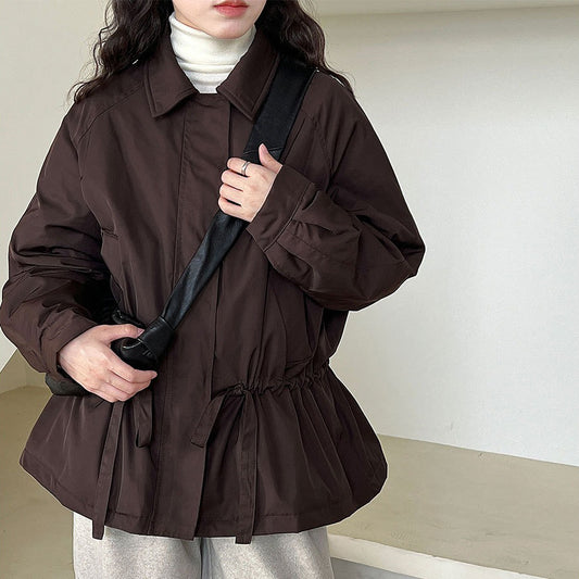 【アウター】レトロオールドマネー風 ドローストリング 中綿トレンチコート レディース 秋冬新作 綿入れコート【JZシリーズ】