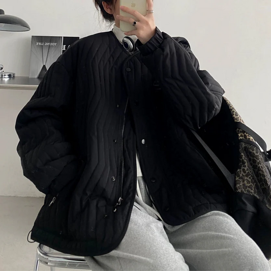 【アウター】 秋冬 ゆったり あったか 綿入れコート 丸首 中綿ジャケット【FCシリーズ】