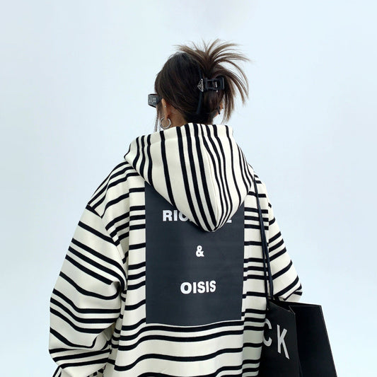 【アウター】Chic ルーズ 春秋 レトロ ストライプ 刺繍 フード付き ジャケット【FCシリーズ】
