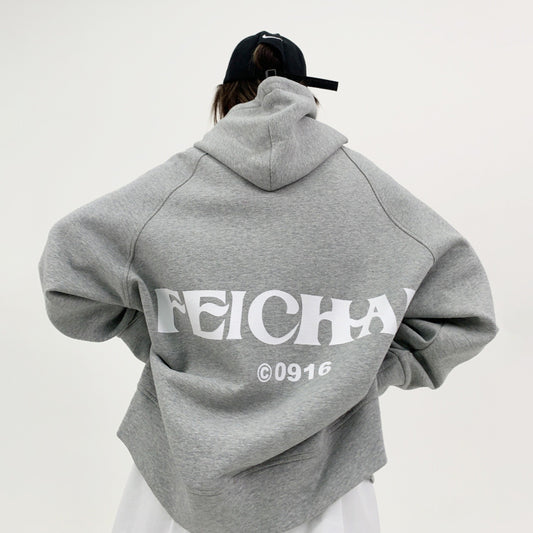 【アウター】春秋 Oversize サイドジッパー プリントフード付き カップル用 ジャケット【FCシリーズ】