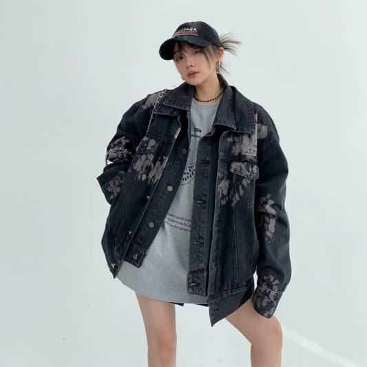【アウター】春秋 アメリカン 小洒落 ヘビーウェイト カップルジャケット ゆったり レトロデザイン グラフィティ フード付きデニムジャケット【FCシリーズ】