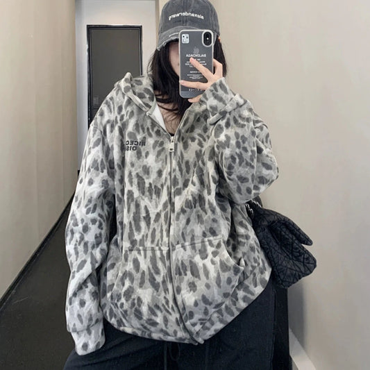 【アウター】春秋 oversize 厚い保温 ゆったり レトロ アルファベット ヒョウ柄 ジャケット【FCシリーズ】