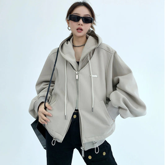 【アウター】オーバーサイズ 春 秋 冬 裏起毛 フード付き ジャケット 【JZシリーズ】