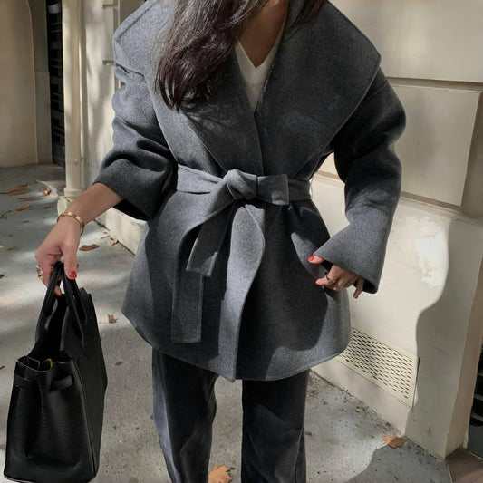 【アウター】レトロ 秋冬 折り襟 ベルト コート
