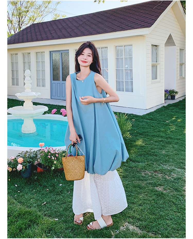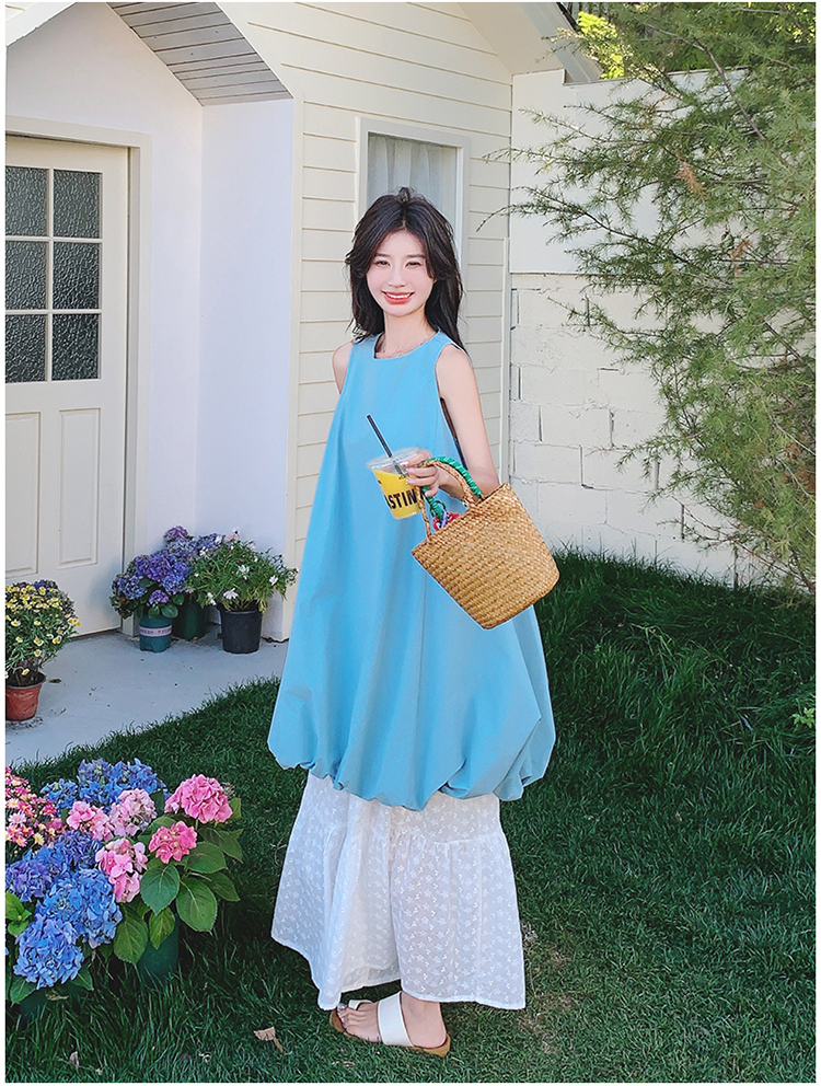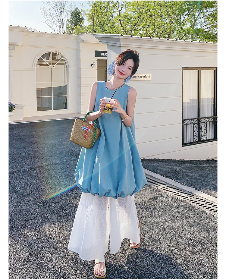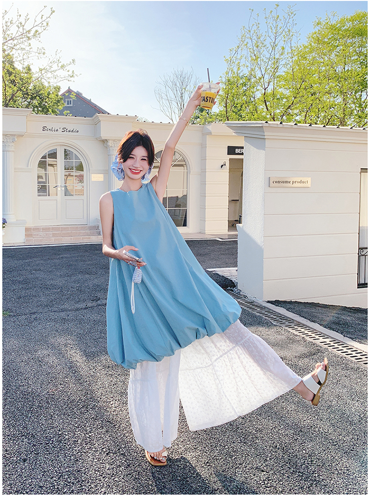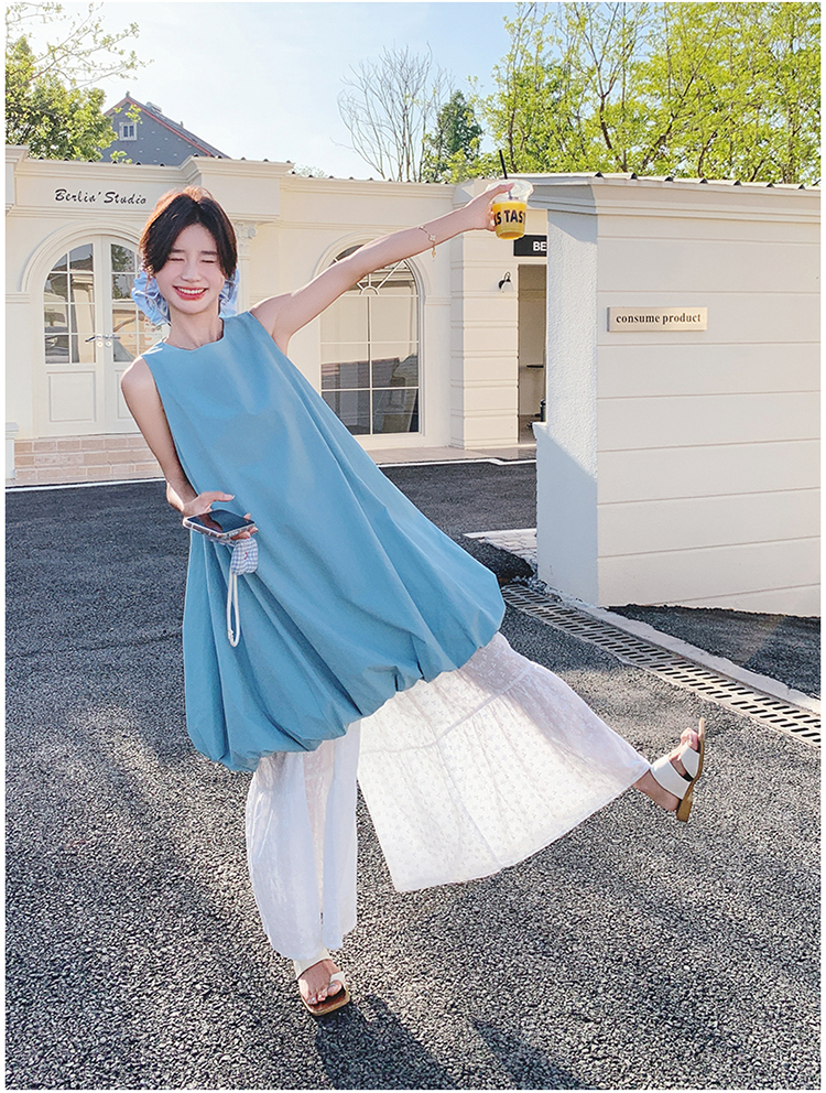 2点セット!【セットアップ】夏新作 優しげコーデ ノースリーブワンピース + レースワイドパンツ 2点セット【JZシリーズ】
