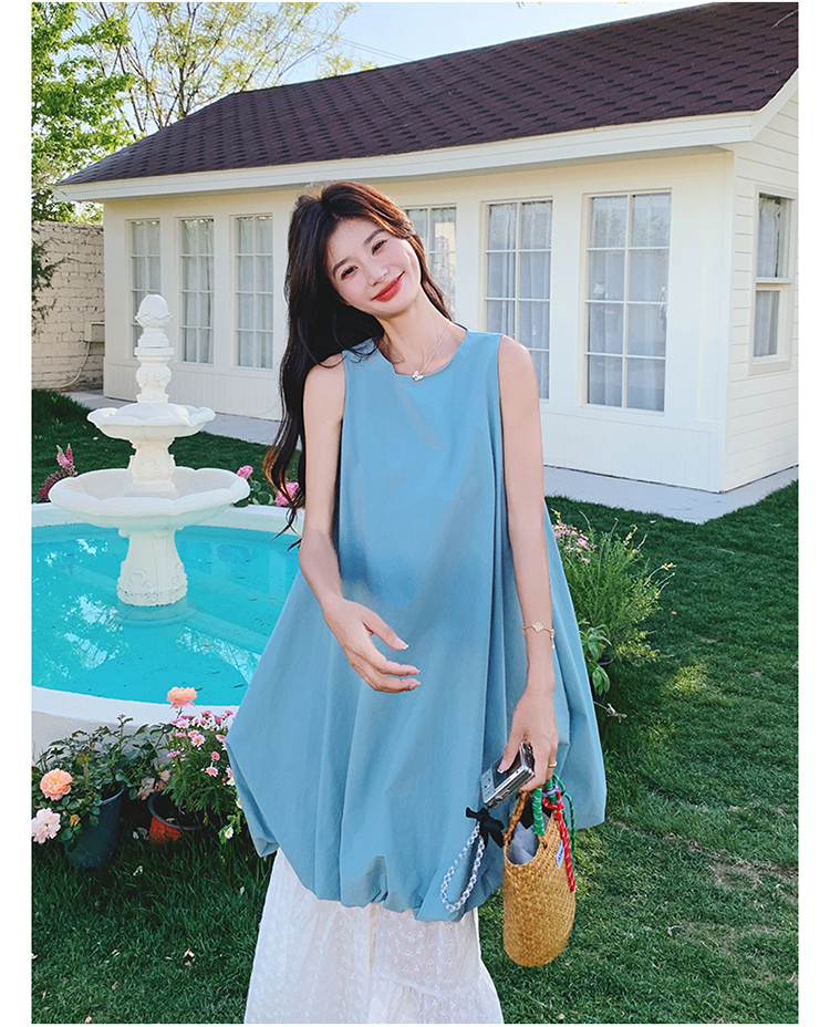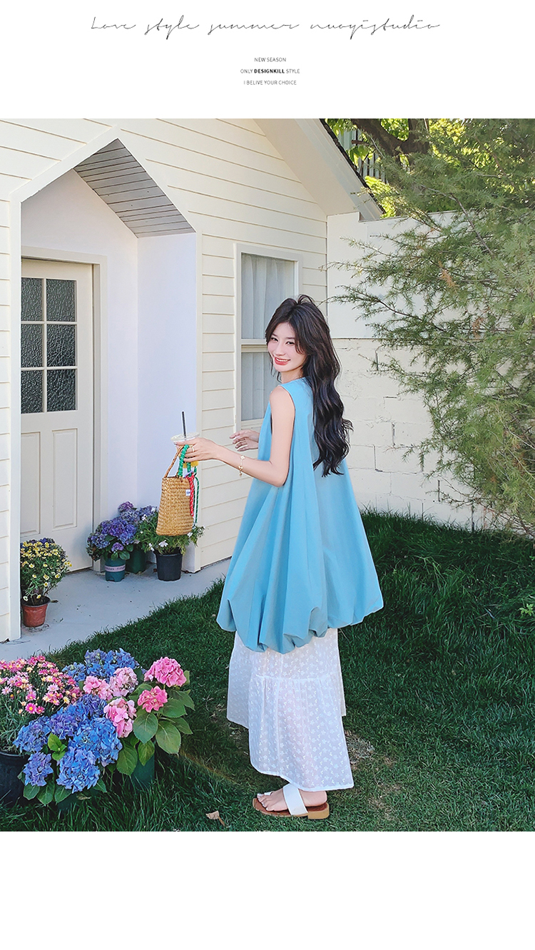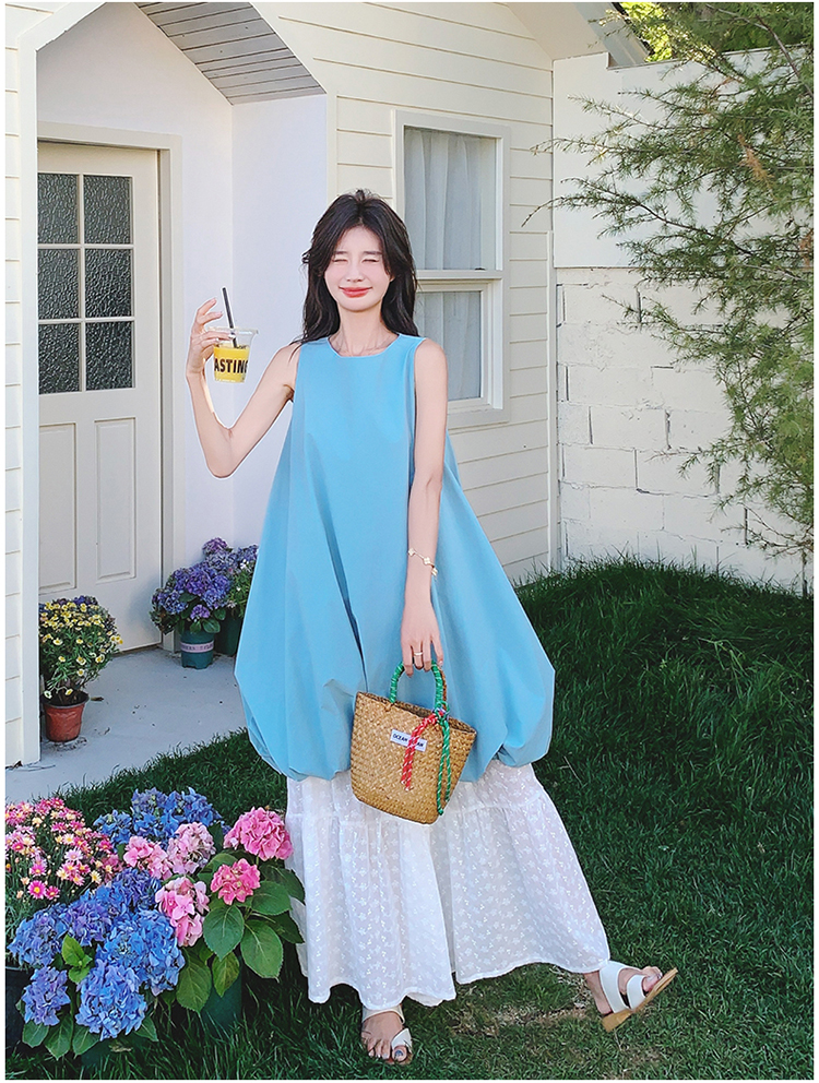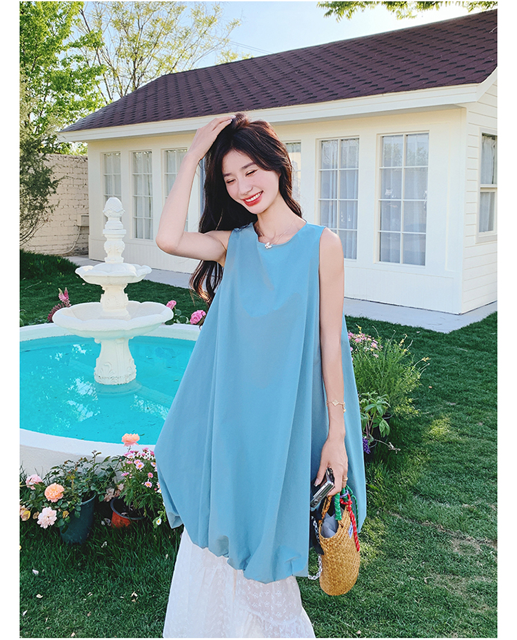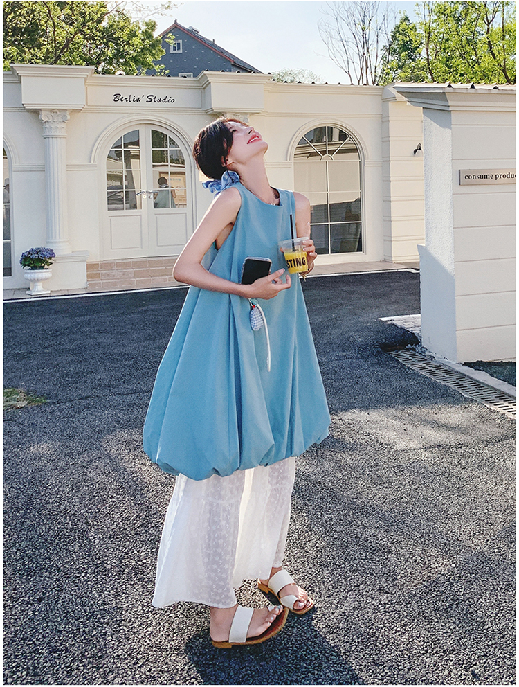 2点セット!【セットアップ】夏新作 優しげコーデ ノースリーブワンピース + レースワイドパンツ 2点セット【JZシリーズ】