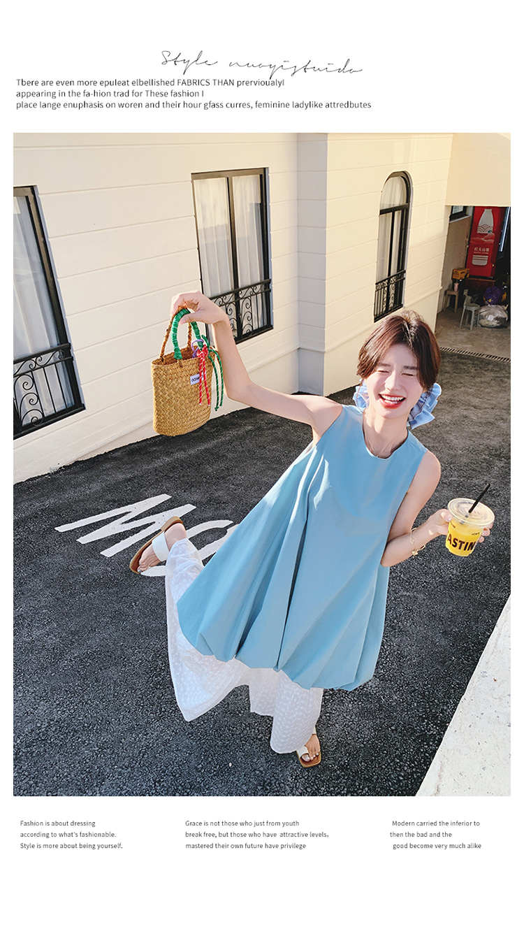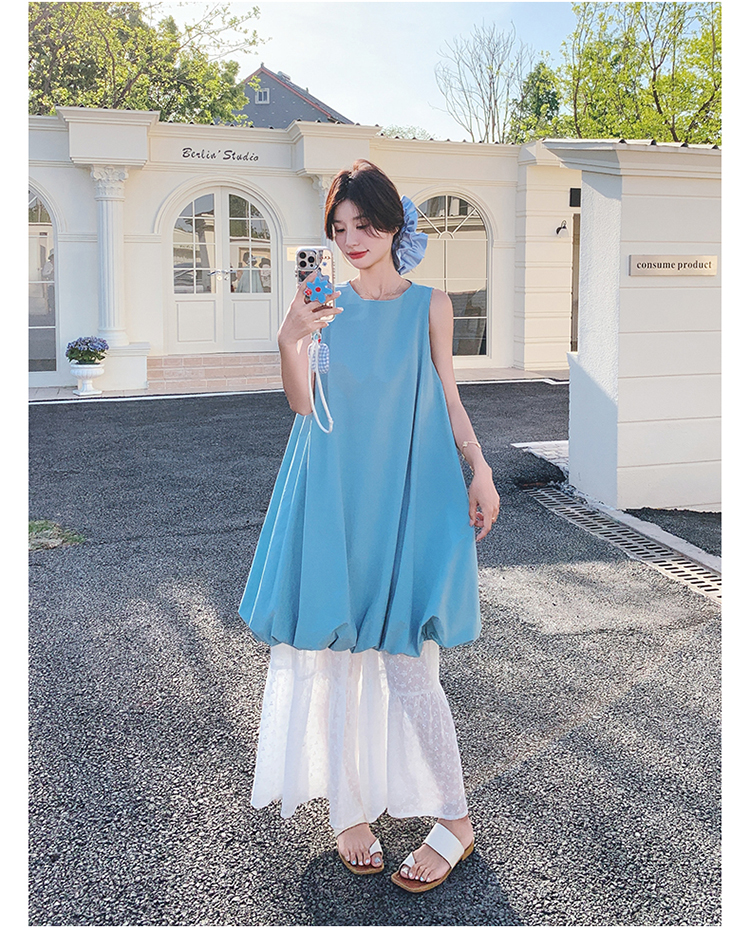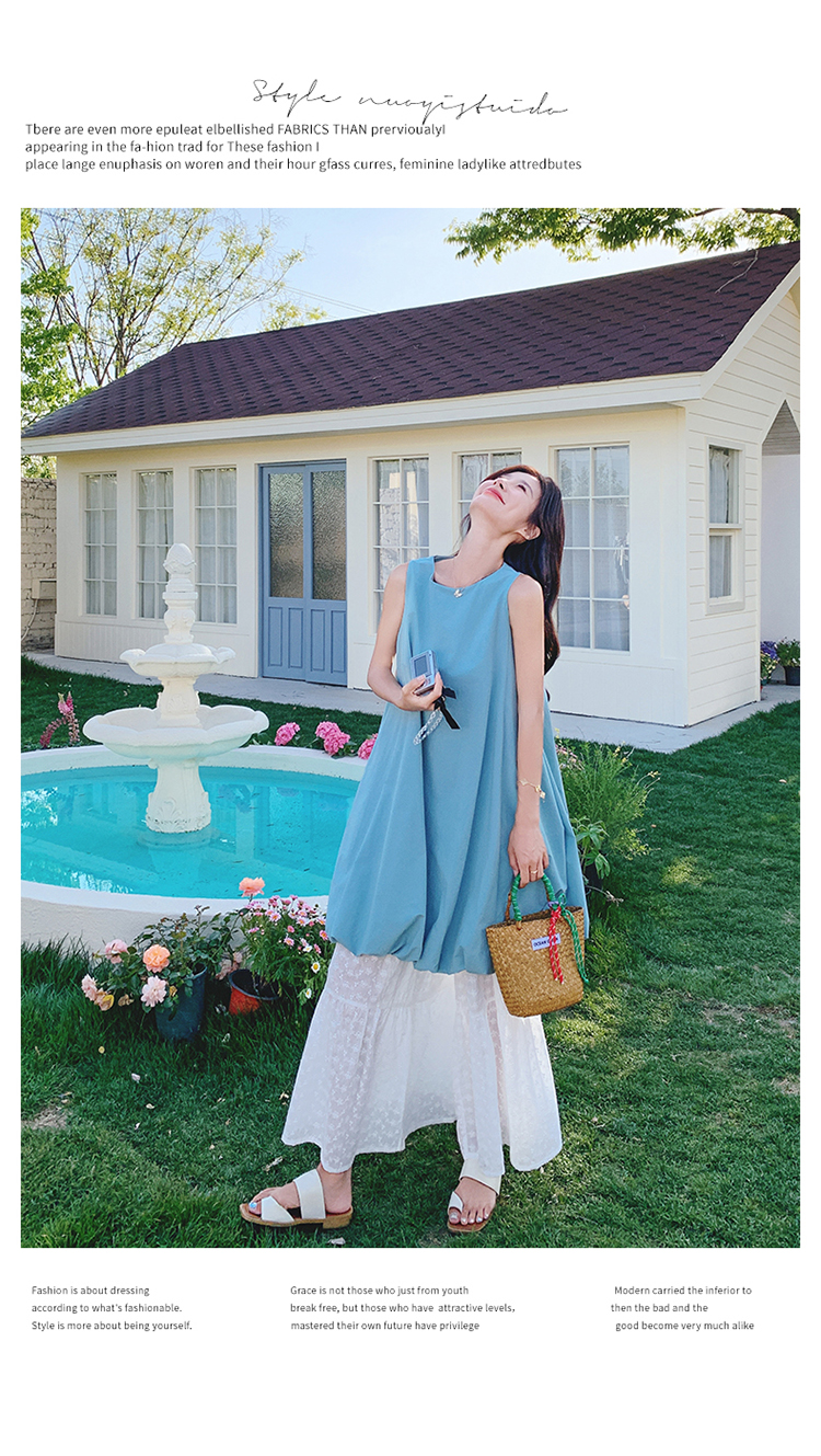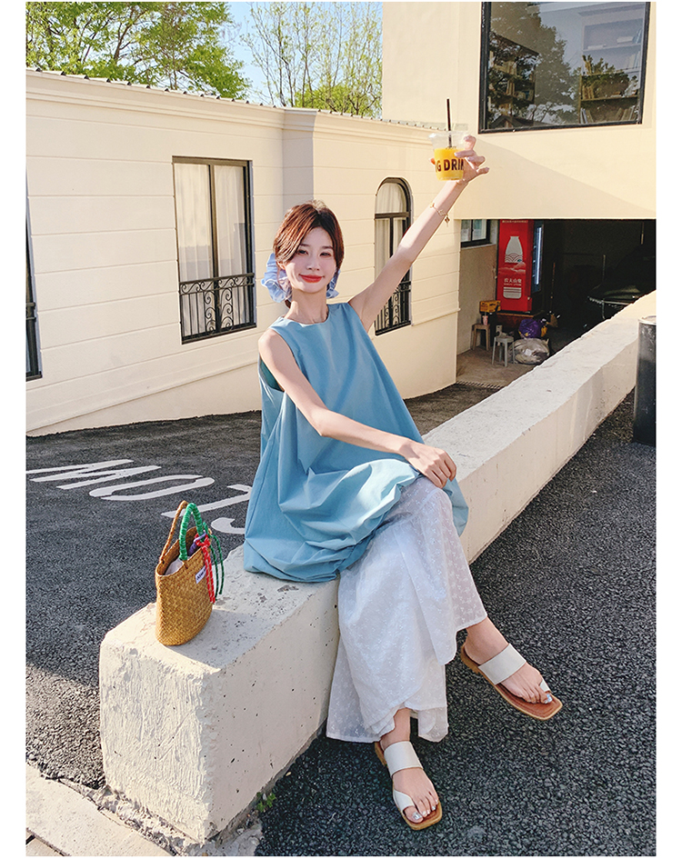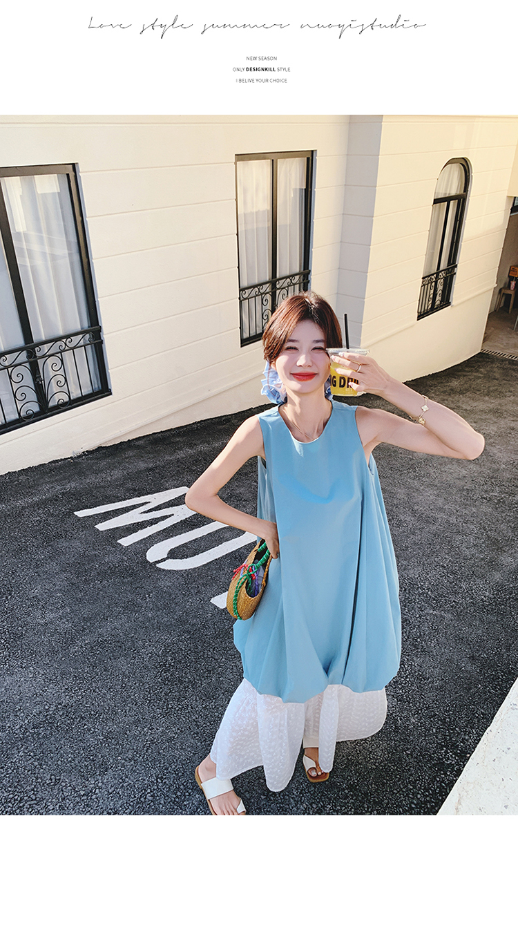 【商品名】【ワンピース】夏新作 優しげコーデ ノースリーブワンピース + レースワイドパンツ 2点セット【JZシリーズ】