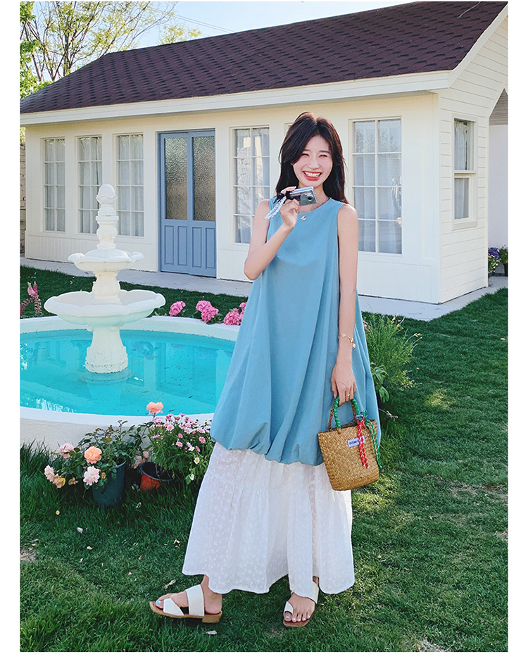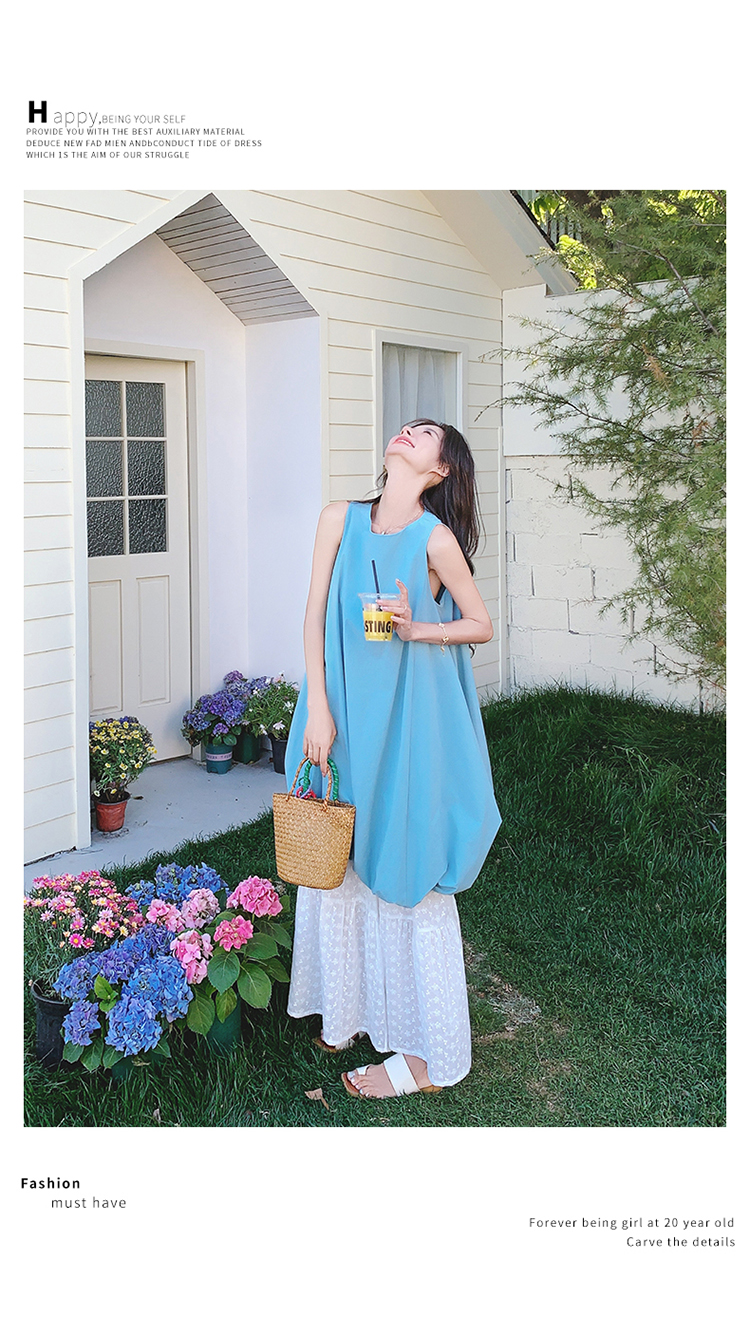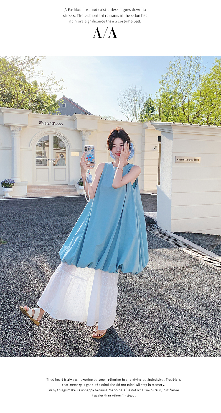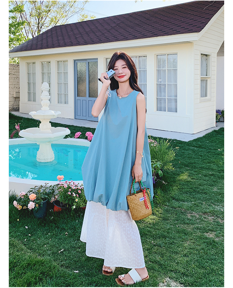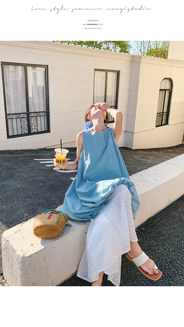 【商品名】【ワンピース】夏新作 優しげコーデ ノースリーブワンピース + レースワイドパンツ 2点セット【JZシリーズ】