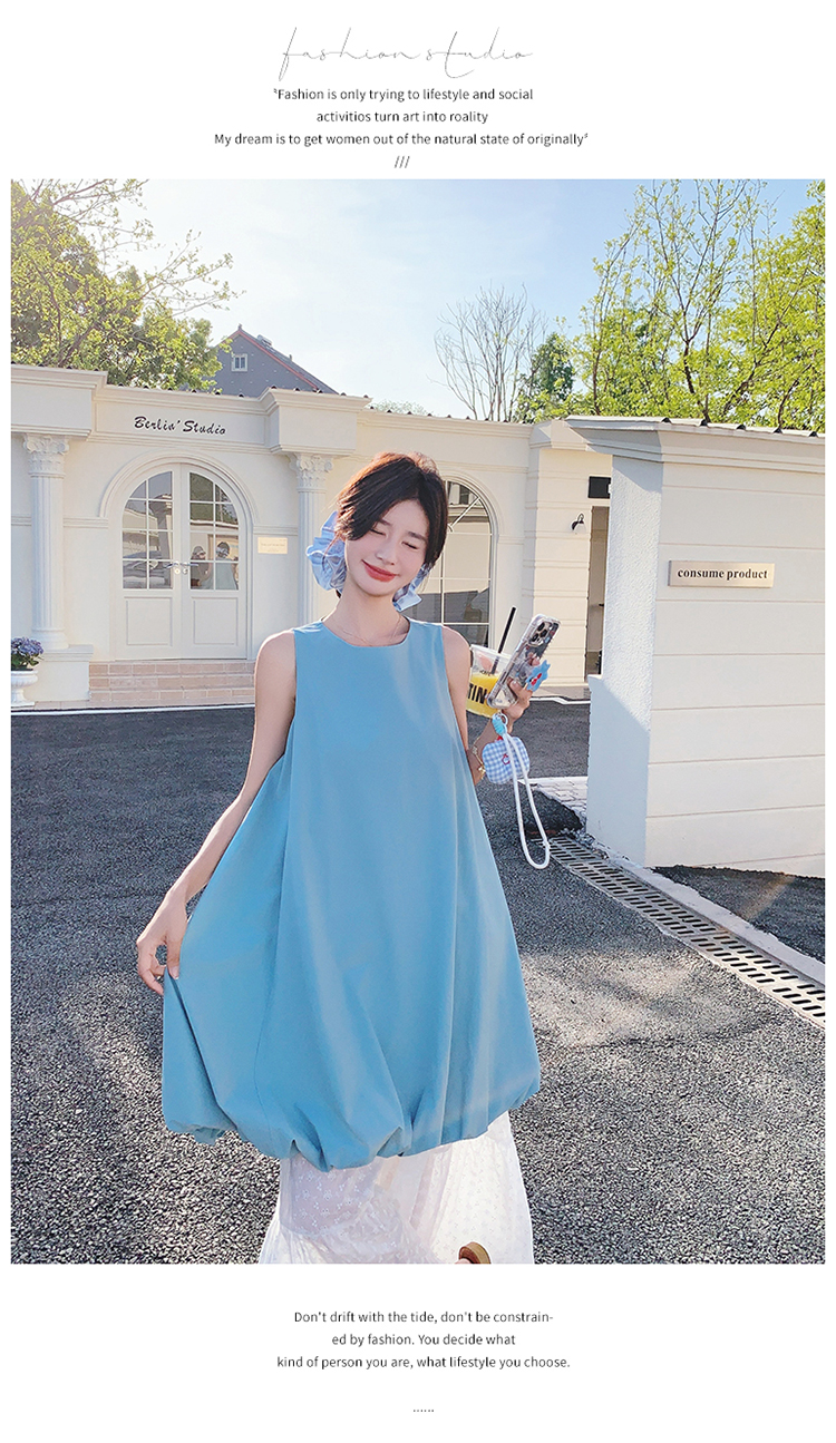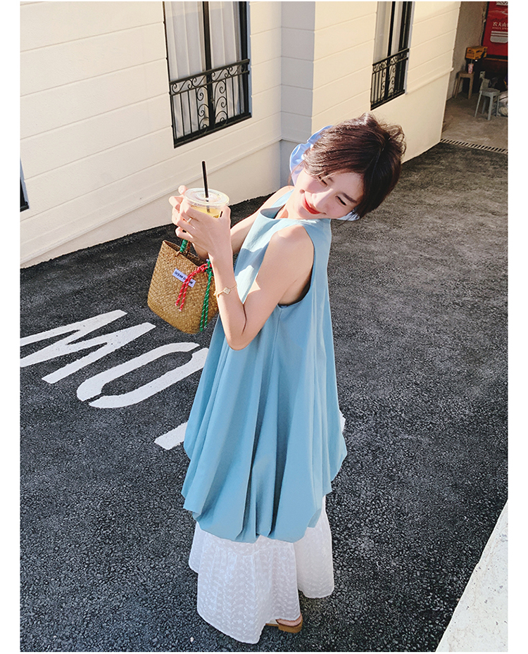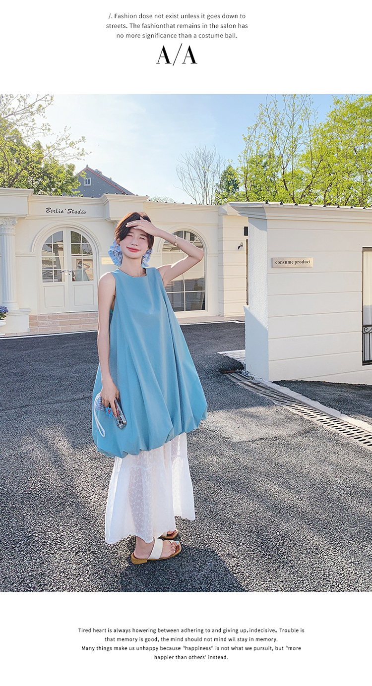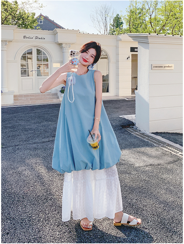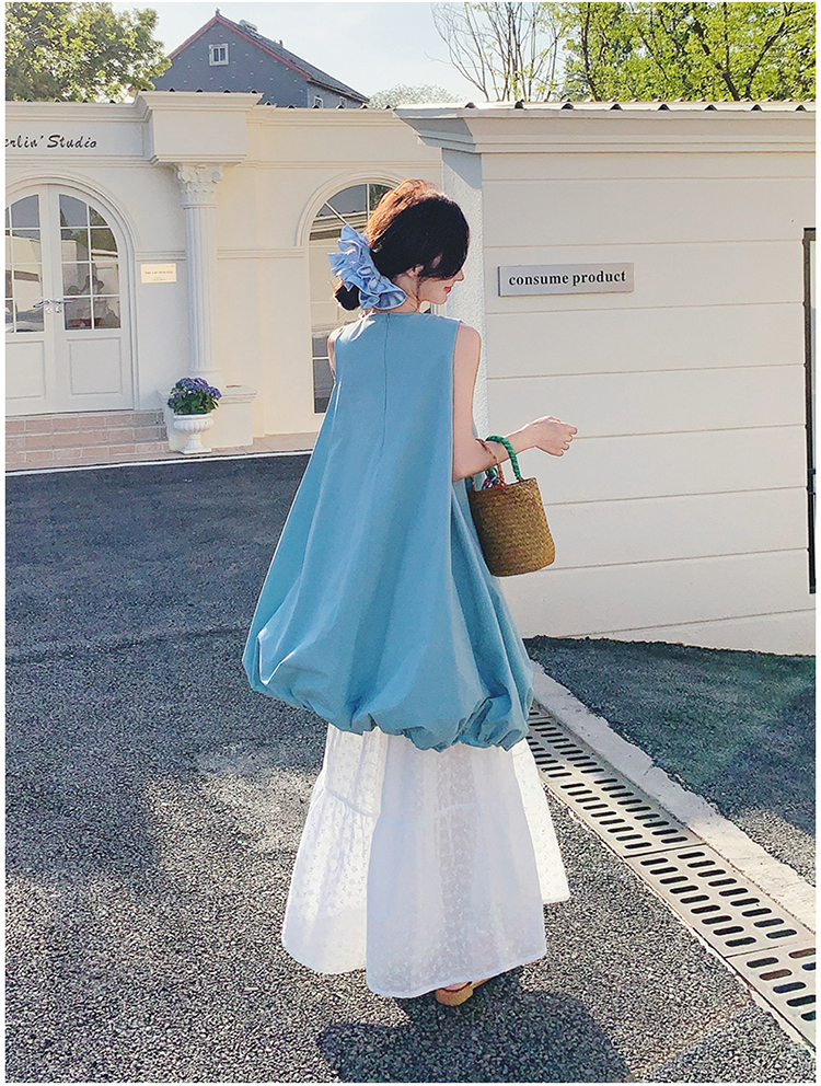 【商品名】【ワンピース】夏新作 優しげコーデ ノースリーブワンピース + レースワイドパンツ 2点セット【JZシリーズ】