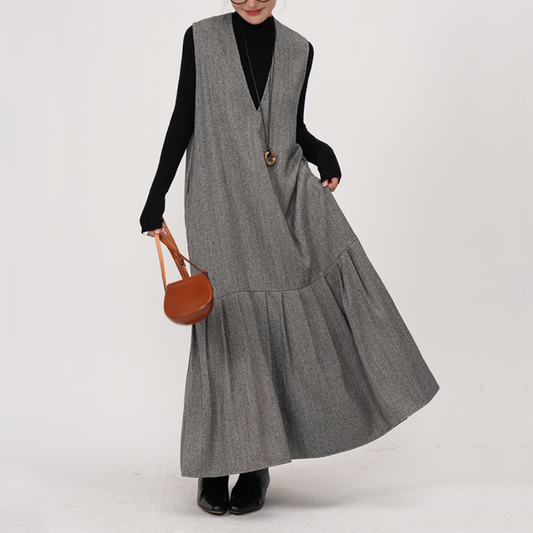【24AW】【10~15日内発送】【ワンピース】春秋冬 Vネック エレガント フリース加工 ベスト ワンピース