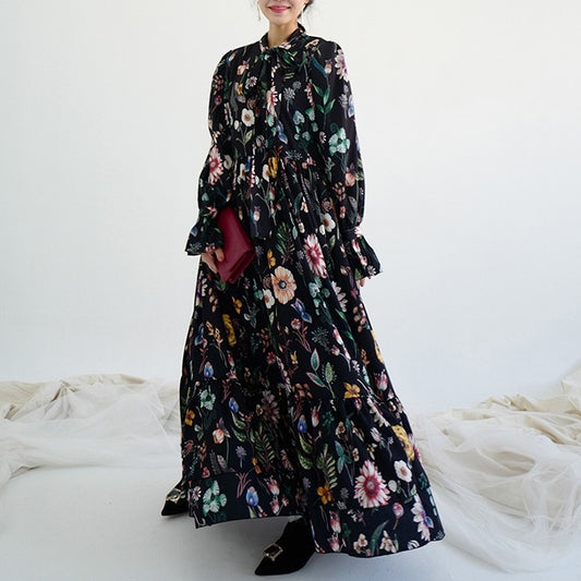💓大好評💓【ワンピース】春秋 韓国風 chic エレガント 花柄 フレア 長袖ワンピース【SHシリーズ】