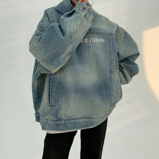 【トップス】春秋冬 Oversize レトロ 刺繍 ゆったり フード付き デニム パーカー【FCシリーズ】【15~20日発送】