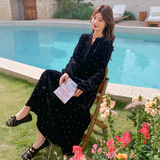 【ワンピース】春 秋 冬 大人フェミニン フレンチレトロ 刺繍 ベルベット 気質よい 長袖ワンピース【SHシリーズ】