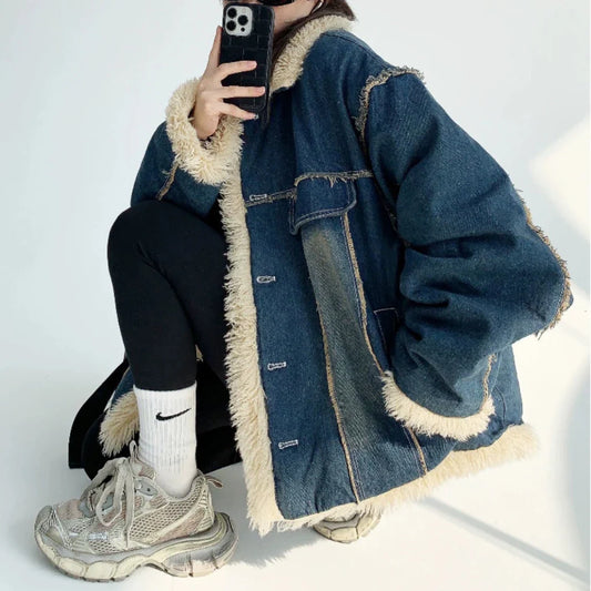 ❤️超人気商品❤️【アウター】秋冬 ヴィンテージ加工 厚い保温 レトロ oversize デニム綿入れコート【FCシリーズ】