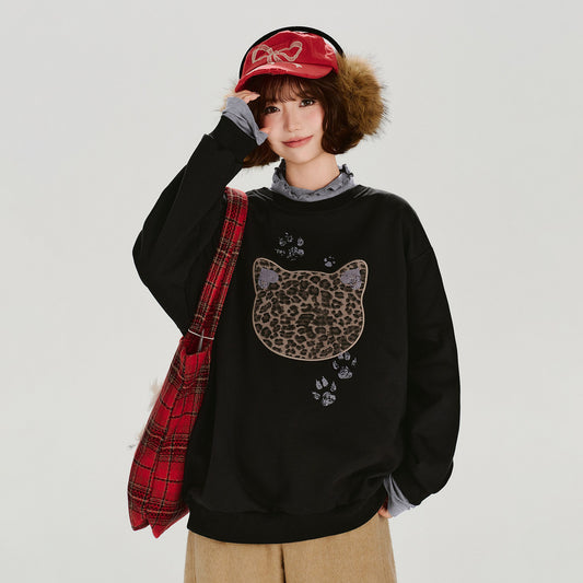 2/2~2/5⭐️期間限定 60%OFF !🏆 売れ筋No.1【トップス】ユニセックス対応 レトロ 豹柄 猫 ゆったり ラウンドネック ネコ柄 ニットセーター【FCシリーズ】
