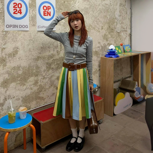 【ボトムス】ドーパミンカラー カラフル プリーツ フレア スカート 【SHシリーズ】