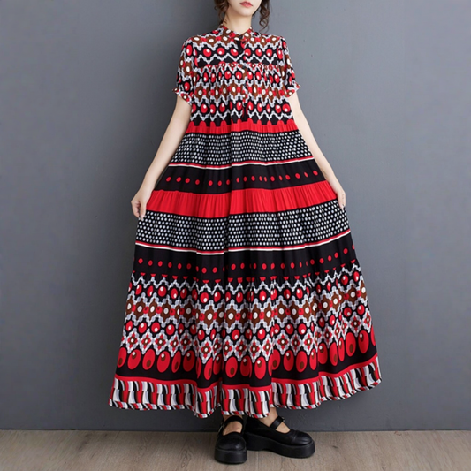 期間限定⭐️60%OFF【ワンピース】ゆったり バルーンスリーブ エスニック風 半袖 ロングワンピース 大きいサイズ レディース【SHシリーズ】