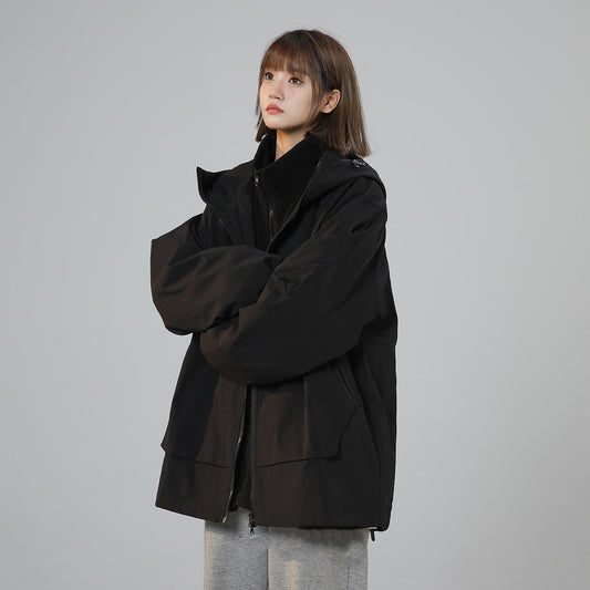【アウター】アーバンアウトドア風 ブラック 山系 塩系 ゆったり 機能性 フード付き 春秋新作 ジャケット レディース【FCシリーズ】