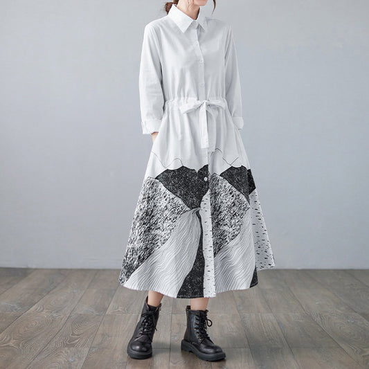 【ワンピース】春新作 レトロプリント 切替デザイン シャツワンピース 長袖 ゆったりシルエット【AHシリーズ】