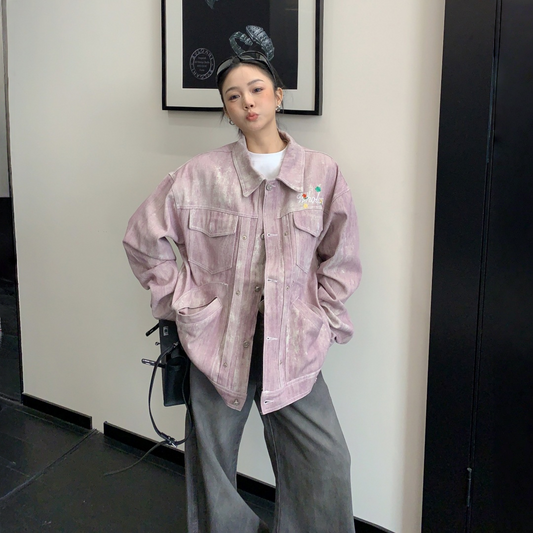【トップス】刺繍 ヴィンテージ加工 抜け感 レトロ ジャケット 【FCシリーズ】