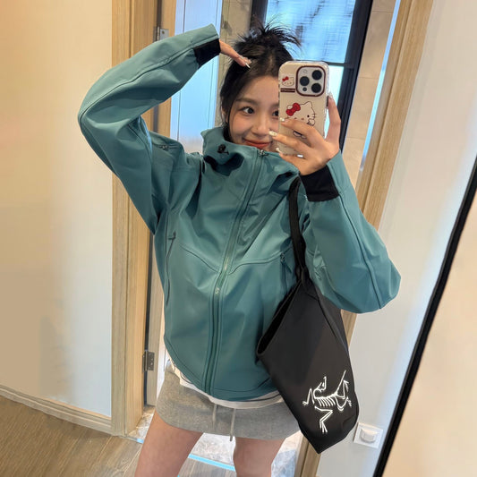 🎨7色展開 | 最大体重90kgまで対応【アウター】ソフトシェルジャケット レディース 秋季 アウトドア 登山 機能性 フード付き 三防ジャケット【FCシリーズ】