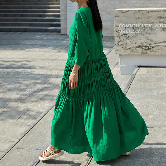 【ワンピース】グリーンワンピース レディース ロングドレス 新作春夏用 リラックス&リゾート風【JZシリーズ】