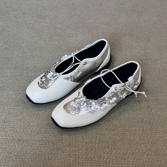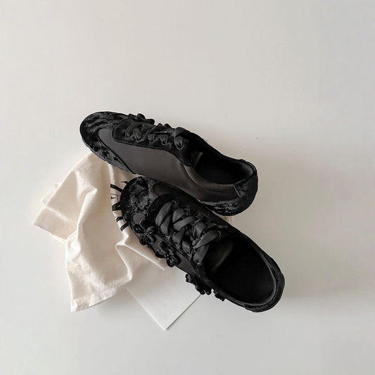 【シューズ】フラワー フラワー レトロ レースアップ ジャーマントレーナー パンプス 【JZシリーズ】