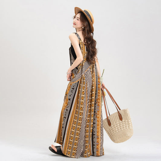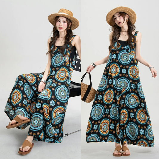 【ワンピース】リゾート ワンピース エスニック プリント ノースリーブ ロング丈 大きいサイズ 体型カバー 着痩せ おしゃれ【SHシリーズ】