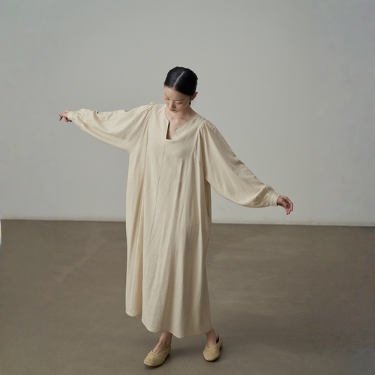【ワンピース】ナチュラルテイスト Vネック 上品な雰囲気 長袖 ワンピース【JZシリーズ】