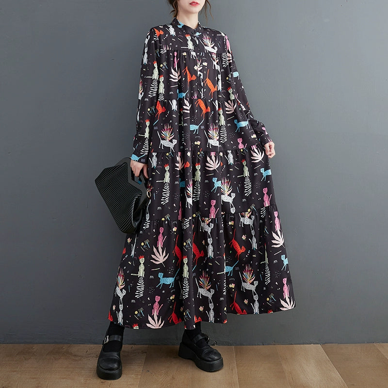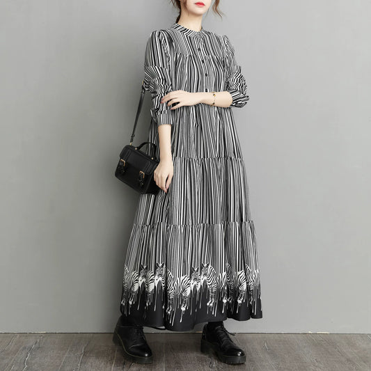 【ワンピース】春秋冬 韓国風 ゆったり プラスサイズ プリント 長袖ワンピース【SHシリーズ】