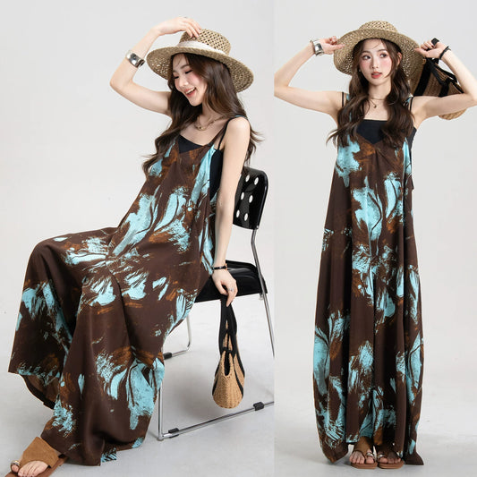 【ワンピース】リゾート ノースリーブワンピース 2026 夏 ニュアンス 染め プリント 大きいサイズ キャミワンピ ロング丈 体型カバー 着痩せ きれいめ【SHシリーズ】