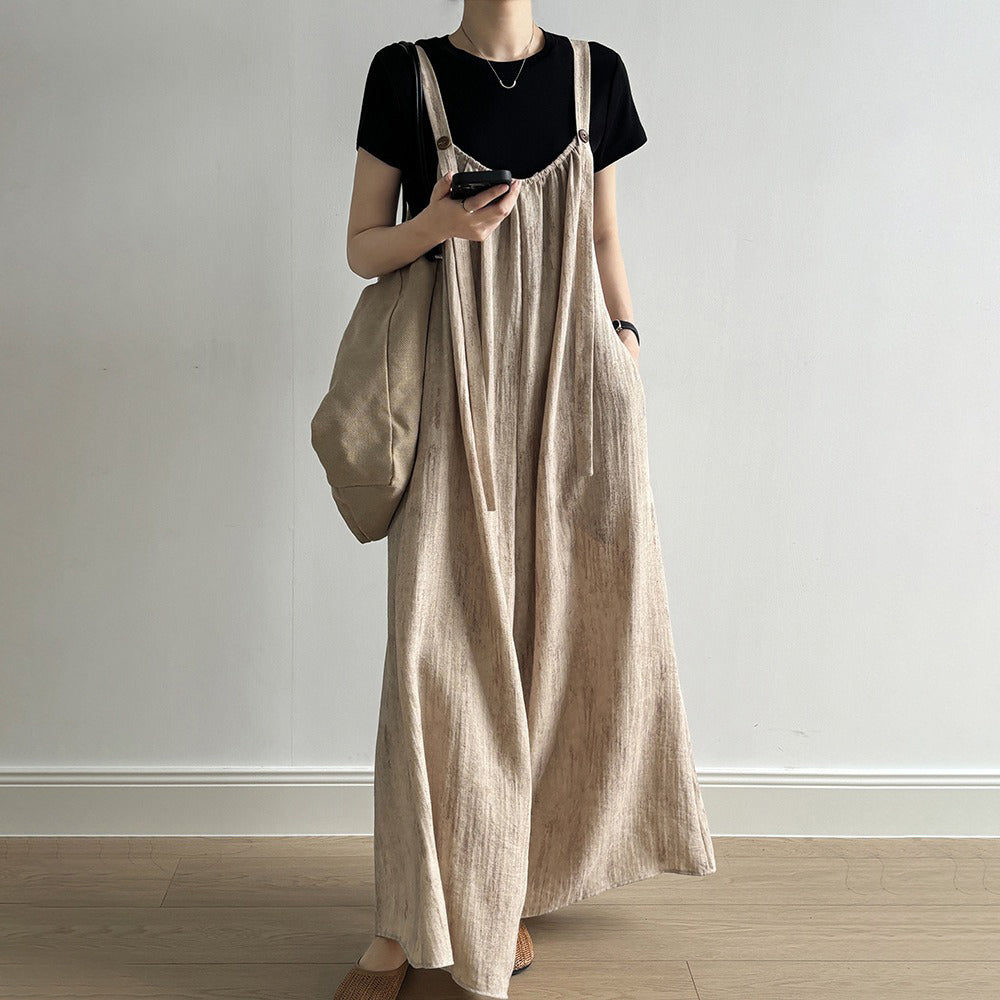 期間限定⭐️60%OFF🔥人気急上昇中🔥【ワンピース】夏 レトロ 無地 綿麻 ロング ノースリーブワンピース