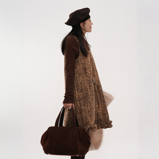 【24AW】【10~15日内発送】【ワンピース】春秋冬 Vネック エレガント フリース加工 ベスト ワンピース