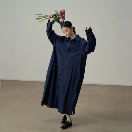【ワンピース】綿100% ゆったりストレート ネイビー 長袖 ワンピース 【JZシリーズ】