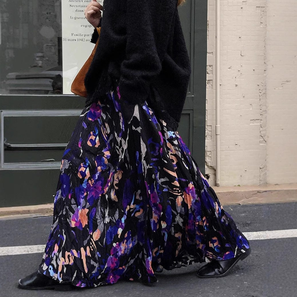 💡人気No.1💡【ボトムス】春夏秋冬 大振裾 フリルギャザー 花柄 スカート【SHシリーズ】