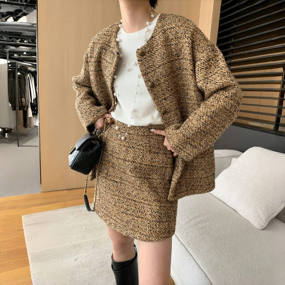 【ワンピース】レイヤードに最適な ツイード 春 秋 冬 シャネル風 ジャンパー ワンピース 【JZシリーズ】