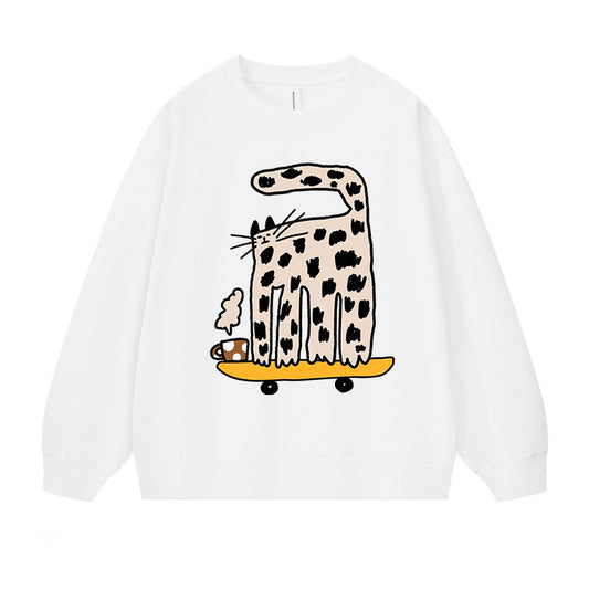 7カラー【トップス】スケート 猫柄 プリント クルーネックスウェット 秋冬 ルーズ 男女兼用 パーカー【FCシリーズ】
