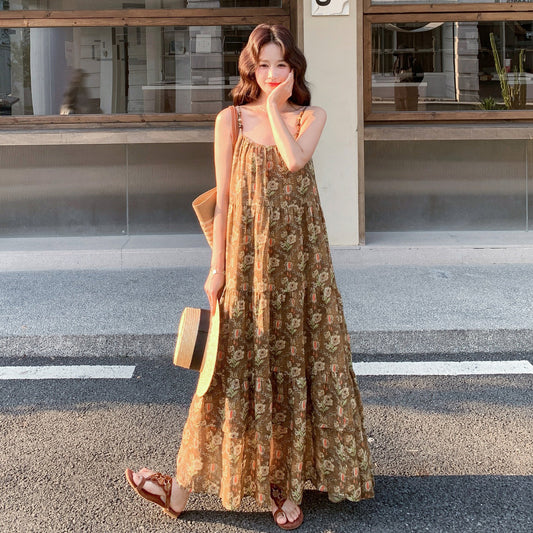 【ワンピース】夏新作 フレンチエレガンス 花柄 ノースリーブ キャミワンピース旅行 リゾート 海辺映え ロングドレス【SHシリーズ】