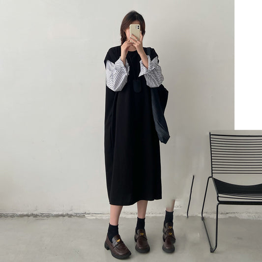 3/6~3/9 ⭐️60%OFF🔥リピーター続出【ワンピース】春秋ラウンドネック 長袖 ニット パッチワーク ロング 長袖ワンピース