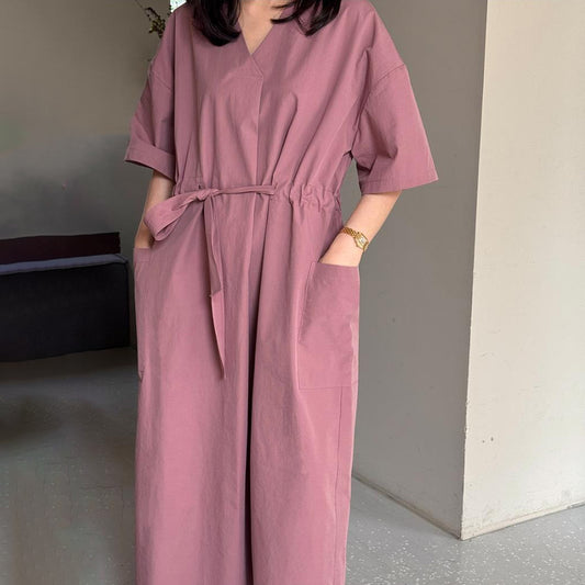 【ワンピース】🌼韓国風 春夏 大きいサイズ ワンピース 半袖 カジュアル ゆったり ポケット付き ウエストシェイプ レディース【JZシリーズ】
