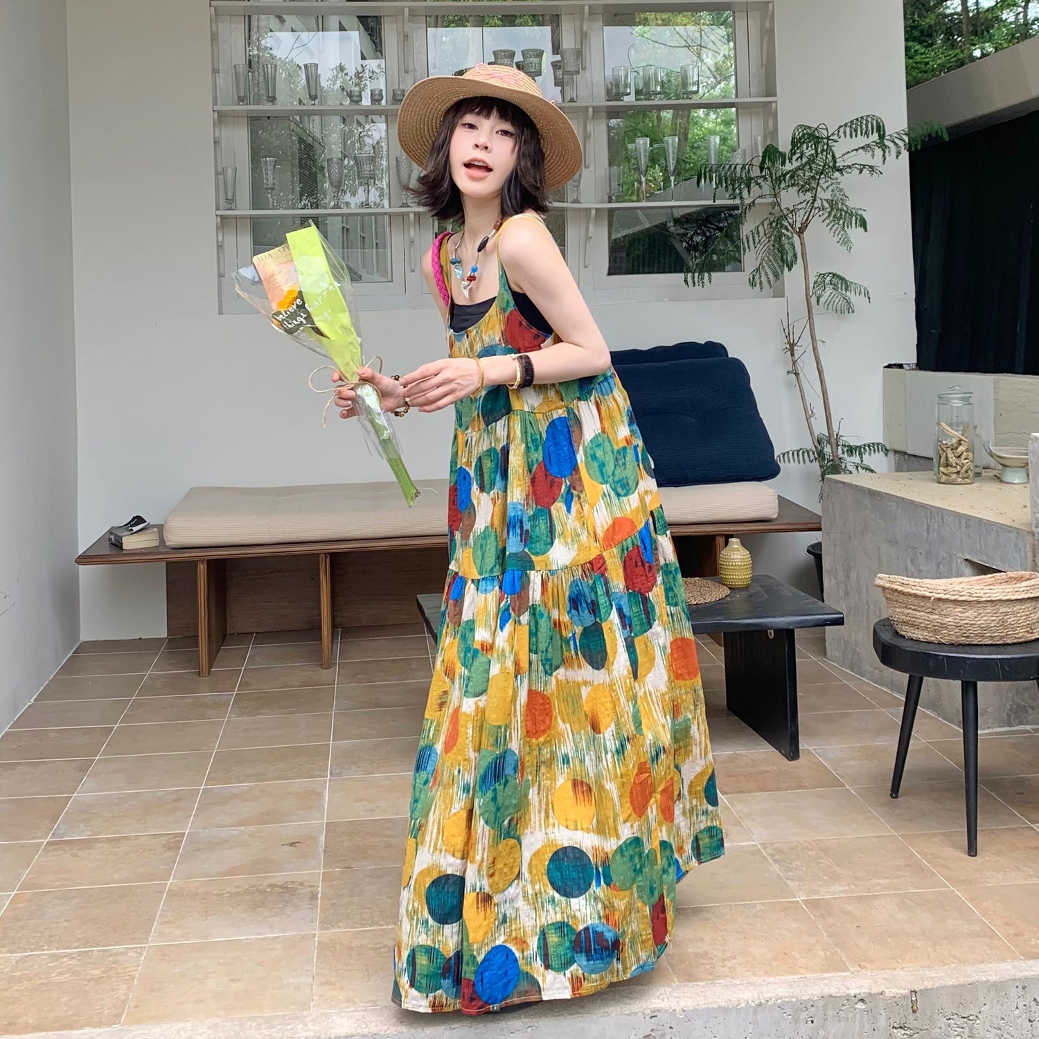 最後の3日間☀️夏商品先行セール!60%OFF!🚀 大人気商品【ワンピース】アート油絵風 ゆったりレトロ 着痩せ効果 ノースリーブワンピース【SHシリーズ】