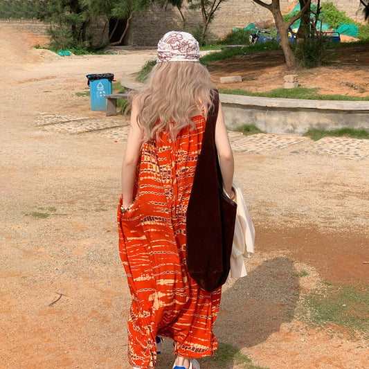3/12~3/18限定☀️夏商品先行セール!60%OFF!【ボトムス】アートタイダイデザイン 夏 ゆったりカジュアル リラックスシルエット Vネックキャミオールインワン【SHシリーズ】