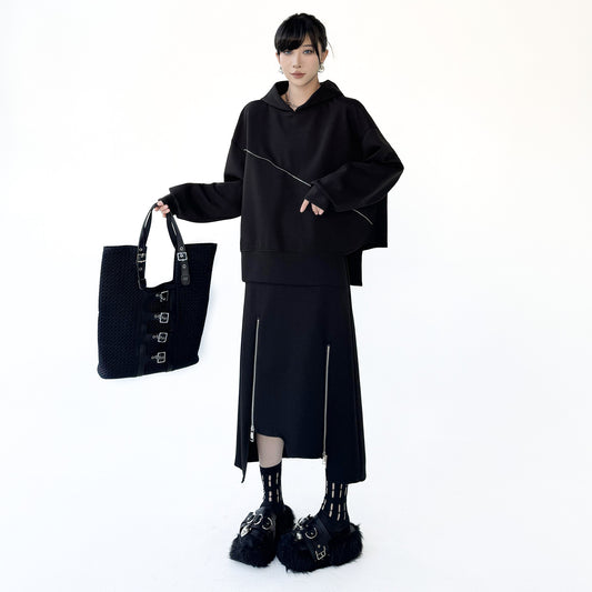 【セットアップ】【単品注文】モード系 ミニマルデザイン 春新作 ルーズ フーディー+ウエストゴムスカート 上下セット【AHシリーズ】