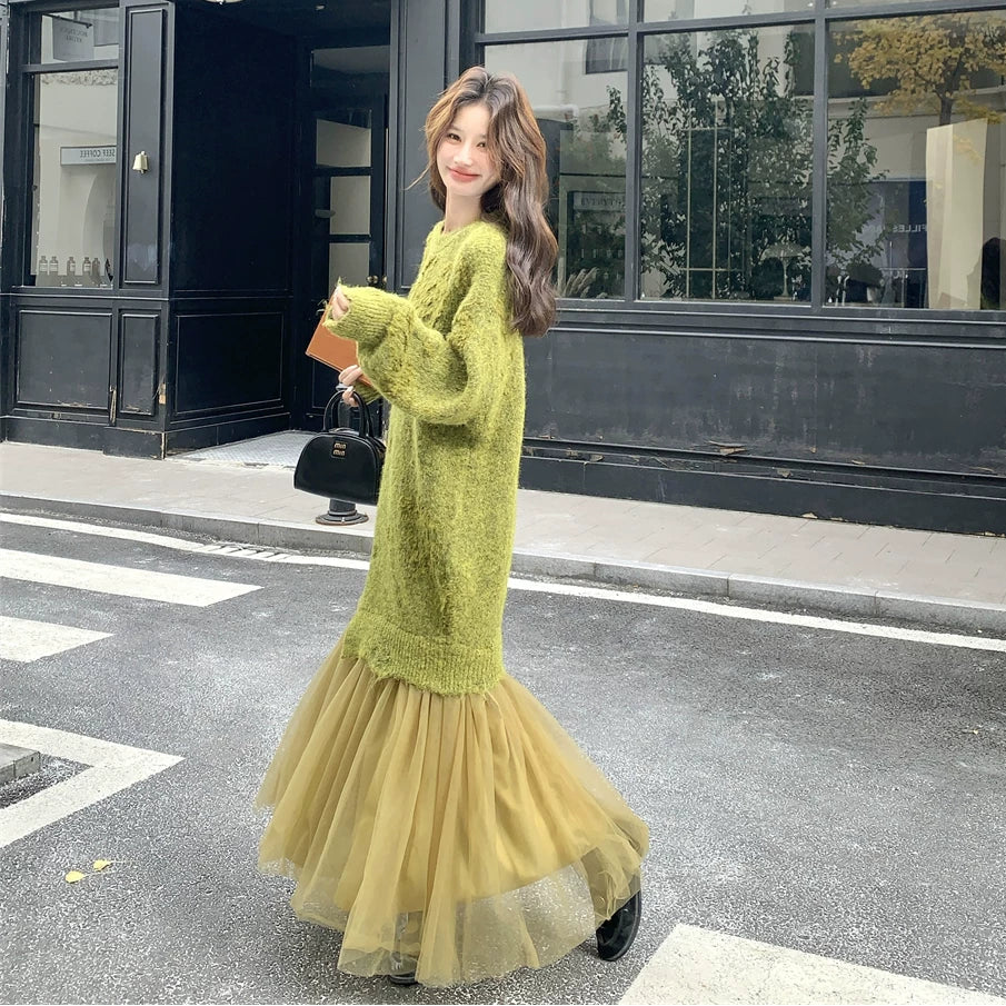 2/25~3/2 | 期間限定⭐️60%OFF🔥HOT【ワンピース】春秋ラウンドネック 長袖 ニット パッチワーク ロング 長袖ワンピース