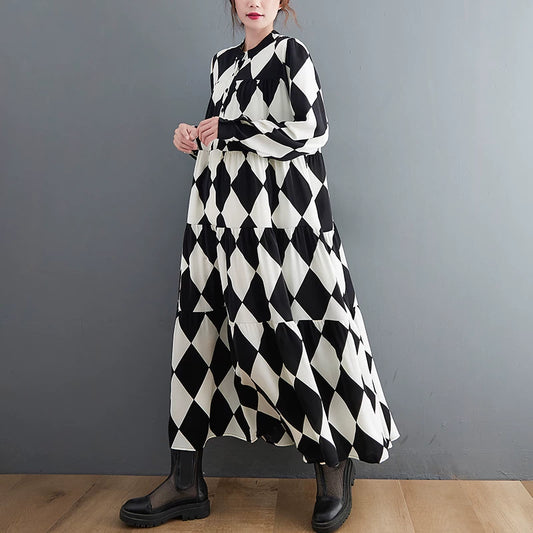60%OFF⭐️期間限定【ワンピース】韓国風 大きいサイズ ゆったり 着痩せ ファッション プリント 長袖 ミディ ワンピース【SHシリーズ】