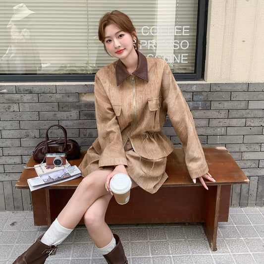 【セットアップ】コーヒー フード付き セーター + ブラックワンピース 2点上下セット【JZシリーズ】