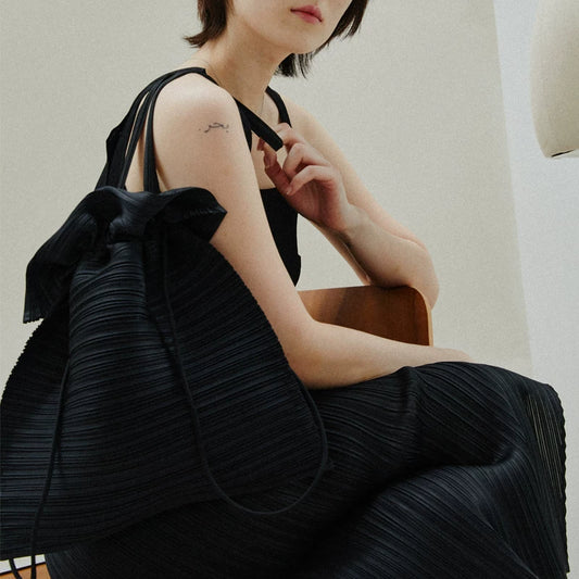 【バッグ】オリジナルデザイナーズ ワンショルダーバッグ プリーツデザイン+ハンドメイド結びデザイン
